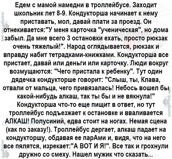 У одного парня звонит мобильник. Он поднимает трубку и ему говорят: в среду в 15:00 приходи в центр города и мы покажем, кто убил твоего отца - Он говорит: -хорошо. 5 минут спустя, ему звонит его любимая девушка и говорит: - Если в среду в 15:00 ты не приедешь, то никогда на мне не женишься. Показать полностью…Парень ответил:-хорошо. Через несколько часов ему звонят его друзья: -Братан, в передрягу попали, приезжай в центр в среду в 15:00, без тебя ни как.: -хорошо. Он спросил у своей матери: -Что ему делать: 3 самые главные вещи в его жизни : убийца отца, будущая жена,друзья! Мать ему отвечает: -отца уже не вернешь, девушку еще встретишь,езжай к друзьям... ДРУЖБА- это святое!!! В среду в 15:00 пришел он к своим друзьям. Они вышли из машины, открыли заднюю дверь, там сидит его девушка в свадебном платье, открывают багажник, там голова убийцы его отца. Дай БОГ чтобы тебя окружали только такие друзья..